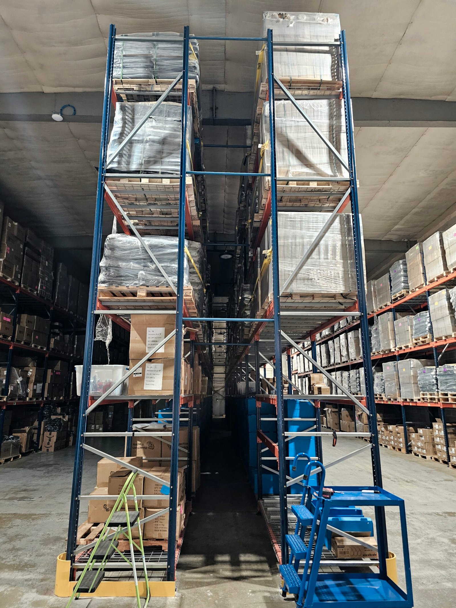 This selective racking system was designed to increase pallet positions, improve pick efficiency, and support a growing SKU base. The configuration was customized to fit the client’s specific product dimensions, material flow, and forklift operation style.